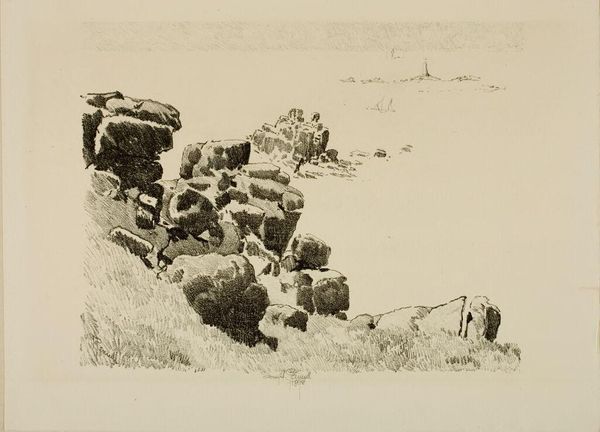 Curator: This is "Sheep Grazing," an etching by Samuel Howitt, who was born in 1756 and died in 1823. Editor: It feels like a daydream. All soft lines and huddled forms, like the landscape itself is sleepy. Curator: Howitt was known for his animal subjects. Sporting scenes and rural life were very popular with the British gentry at the time. Editor: There's a kind of charming chaos to it. A woolly, bleating, very real chaos. Curator: Yes, and the etching technique lends itself to this bucolic subject matter, don't you think? It gives it an unassuming quality. Editor: Absolutely, the simplicity is its strength. A pastoral glimpse, not a grand statement. It whispers of simpler times.