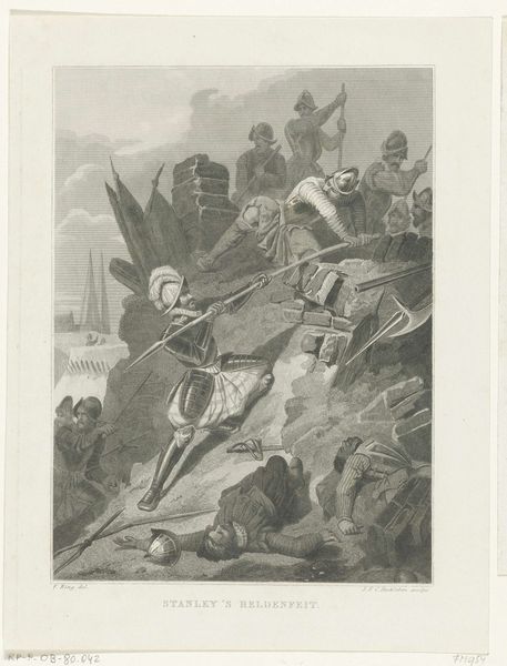 Editor: Here we have Jacobus Buys’ drawing, "Het beeld van Erasmus te Rotterdam beschoten door de Spanjaarden, 1572," created between 1789 and 1791, using pencil, pen and ink. It feels almost like a quick news sketch – so immediate and dramatic! What can you tell me about the story behind this image and its materiality? Curator: What interests me is the relationship between the high-minded subject – Erasmus, intellectual par excellence – and the means by which Buys depicts this historical moment. He utilizes relatively common, easily accessible materials, right? Pencil, pen, ink – the tools of everyday communication, not necessarily of grand historical painting. Doesn't this choice democratize the narrative? Editor: That’s fascinating. I hadn’t considered the accessibility of the materials. It's like he's bringing this heroic narrative down to earth, suggesting everyone could engage with it. How does that relate to the depiction of violence? Curator: Think about the production of weapons depicted - the labor involved, the raw materials sourced. What is being consumed here, beyond ammunition? It's Erasmus, yes, but also a particular political ideology being violently imposed. Notice the detailed rendering of the muskets, versus the sketchier, almost ethereal portrayal of Erasmus. Does that signal anything about what Buys values - or perhaps fears? Editor: It makes you think about who had access to firearms, and how that affected power dynamics in 16th century Rotterdam. Buys is emphasizing something about power and violence beyond the central figure of Erasmus. It reframes what is usually presented as intellectual struggle within very tangible elements. Curator: Exactly. It pushes us to consider not just the grand narratives of history, but the messy, material realities of conflict and the labor and resources that fuel it. Ultimately, how these factors intertwine and reshape both memory, interpretation, and ideology over time. Editor: I see the artwork in a new light, thinking about the artist’s choices regarding material culture impacting this subject, which, until now, seemed merely historical. Thank you for making that connection clearer to me!