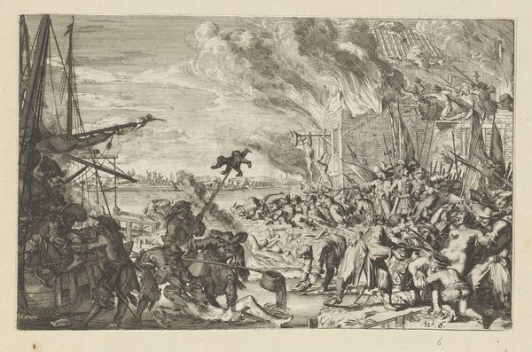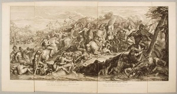 Editor: This is François Verdier's "Scene from Ancient History: Siege of a Walled City," a drawing at the Harvard Art Museums. It's a chaotic scene rendered in earth tones, and I’m struck by the sheer amount of labor required to produce such a detailed sketch. What do you make of it? Curator: I'm drawn to the physical exertion depicted, both in the siege itself and the artist's hand. Consider the sourcing of the drawing materials—the paper, the pigments—and how their production and exchange were tied to the very power structures Verdier depicts. Editor: So, it's not just about the battle, but also about the socio-economic reality of creating the artwork itself. Curator: Precisely! The work embodies a fascinating intersection of artistic labor, material accessibility, and the historical context represented. Editor: I hadn't thought about it that way before. It really deepens my understanding. Curator: Seeing the art as a product of labor and materiality provides a unique lens.