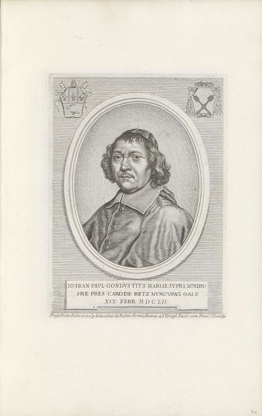 Editor: We’re looking at Etienne Picart’s "Portret van kardinaal Antonio Barberini (II)" from 1658, made with etching and engraving. It gives off a serious, maybe even austere vibe, with all those fine lines creating texture. What strikes you when you look at it? Curator: This piece, while seemingly a straightforward portrait, opens up crucial conversations about power, representation, and the construction of identity in the Baroque era. What do you make of Barberini's attire and the symbols surrounding him? Editor: I see the cardinal's robes and the crests... it definitely screams status and authority. Curator: Precisely! But consider *how* that status is communicated. The ornate details, the calculated gaze - these are tools used to project an image of unassailable power within the complex political landscape of the 17th century. Where does that authority derive from and who is excluded or marginalized in its establishment? Editor: I never thought of a portrait as being part of that kind of system before. Curator: And let's not forget the role of the artist, Picart, in this dynamic. Is he simply a recorder, or an active participant in reinforcing existing power structures? Consider the relationship between the patron and the artist, who held the power in their relationship? Editor: It is fascinating how a portrait can say so much about social structures! I guess it is less about simply recording a likeness. Curator: Exactly. It invites us to interrogate not just the subject, but the whole apparatus of power that enables their representation in the first place. Editor: I’ll definitely look at portraits differently from now on!