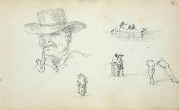 Editor: This is John Singer Sargent’s "Two Standing Figures; Boat," a sketch at the Harvard Art Museums. The figures look detached, almost burdened. What can you tell me about this work? Curator: Sargent's sketches offer a glimpse into the social fabric of his time. Who are these figures, leaning against what appear to be walls? Are they confined, restricted by societal norms or expectations? The boat in the background hints at escape, perhaps even rebellion. What might that signify in relation to gender or class? Editor: I didn’t think of it that way. Curator: Consider the subtle power dynamics at play. Sargent, as a privileged observer, is capturing a specific moment and perspective of these subjects. What responsibility does he have in shaping their narrative through his art? Editor: It gives me a lot to consider, especially regarding the artist’s role in depicting social issues. Curator: Exactly. Art invites us to question, to challenge, and to reimagine the world around us.