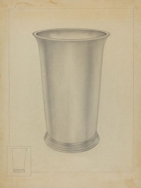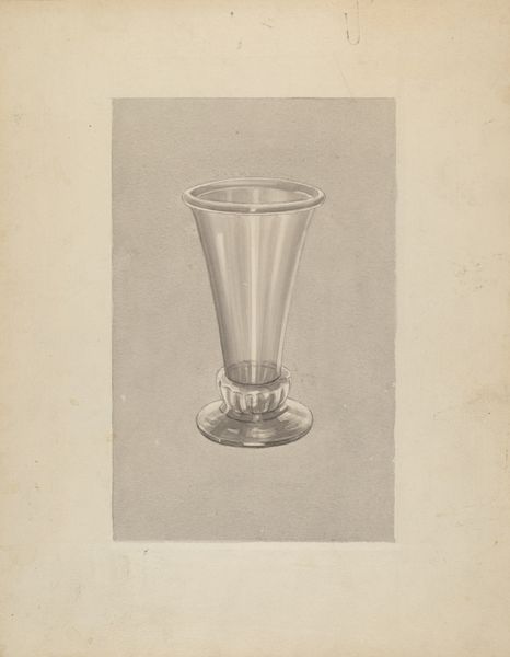 Editor: We're looking at a drawing entitled "Sperm Oil Lamp," created around 1940 by John Dana. It appears to be rendered in ink and pencil, maybe even watercolor. The drawing is very clean, and what immediately strikes me is the symmetry and the sort of stark simplicity. What elements of the composition do you find most compelling? Curator: I'm particularly interested in the play of light and shadow. Notice how the artist uses subtle gradations of tone to suggest the translucence and reflectivity of the glass. The formal qualities speak volumes, consider the precision in line and the balanced composition; Dana gives us a meticulously constructed still life. It draws the eye upwards and speaks of elegant utility. Editor: It’s interesting how much the values change from the base of the lamp, upwards. Do you think the almost complete lack of bright colors, and instead focusing on values and line weight, adds anything in particular to how it functions? Curator: Indeed. The absence of color directs our attention to the formal relationships between the different parts of the lamp. It asks us to consider shape, form, and structure, which are core elements of artistic expression, without the distraction that chromatic information can bring. Notice too, how Dana manages to achieve realism without resorting to perfect verisimilitude. Editor: That makes perfect sense. Looking closely now I am even more impressed by the skillful realism achieved using subtle gradation, rather than bold color, and the eye can decode it easily. Thank you! Curator: The pleasure was mine. I find the focused, almost scientific depiction both impressive and intellectually stimulating, especially through such masterful construction and line work.
