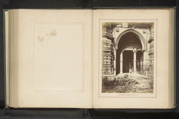 Editor: Here we have "Centrale boog van de Jama Masjid in Ahmedabad," taken before 1866 by Thomas Biggs, using the albumen print technique. It has this sepia tone that makes it seem so distant. How would you approach discussing a piece like this? Curator: As a materialist, I’m drawn to considering the labor embedded in its production. Think about the albumen printing process: eggs, photographic paper, the labor involved in creating both the architectural structure and this particular representation. What does the consumption of this image, particularly its circulation within an album format, tell us about the cultural values placed on representing and owning images of distant lands? Editor: That's interesting, because my first instinct was purely aesthetic – to admire the geometric perfection of the arches. Curator: The perfection is itself a product of both human craftsmanship and technological development, isn't it? The very act of documenting architecture through photography raises questions. How does it reinforce colonial power structures, considering who would have the access and resources to commission or purchase such a print? Editor: So, by focusing on the materiality of the print, we can unravel broader socio-political themes? Curator: Precisely. The albumen print wasn't merely a neutral medium; it participated in constructing a particular gaze. Think about how the choice of representing this architectural subject reflects imperial interests. This wasn't just about capturing beauty; it was also about documentation, control, and ultimately, consumption of the ‘Orient’ through reproducible media. Editor: It is really fascinating to think about this photograph as more than just an image, and really question how its very creation participates in complex power dynamics. Curator: Indeed. Reflecting on the means of production and consumption allows us a more critical understanding of its historical and cultural significance.