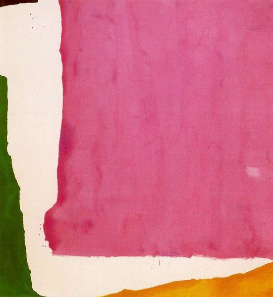 Doug Ohlson made this untitled painting with, what looks like, thinned-down acrylic on canvas. It's all about how the color interacts, and you can feel the push and pull as Ohlson worked. The painting has four sections; each with bold geometric shapes. Look how the pink and orange of the first section bleed into the canvas, contrasting with the clean lines of the stripes. This contrast gives the piece a raw, process-oriented feel, like you're seeing the artist's thought process laid bare. There's a real material honesty. It is like he’s revealing the mechanics of painting. It reminds me of the work of someone like Agnes Martin, with the quiet and careful placement of line and color. This piece is less about a fixed statement and more about the openness of seeing and thinking.