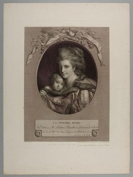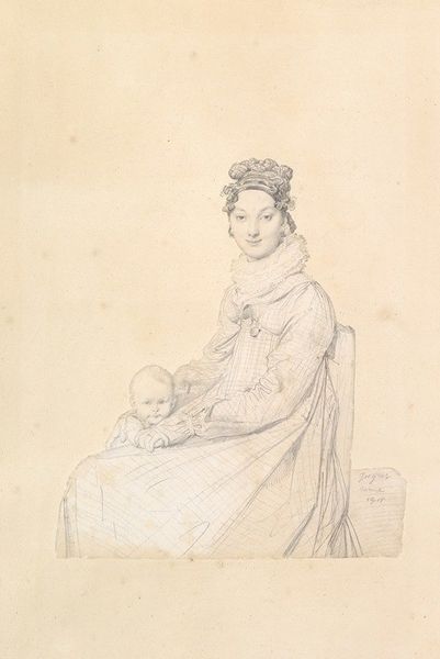 Curator: Welcome. Before us hangs "Portret van Henriëtte van Nassau-Weilburg en Maria Caroline van Oostenrijk," rendered between 1827 and 1834 by Franz Stöber. It's a pencil drawing transformed into a print. Editor: Immediately, I'm struck by its delicate, almost ethereal quality. The light seems to emanate from the figures themselves. It's remarkable how Stöber captured the textures, particularly the elaborate frills and the fabric of their dresses, with just pencil. Curator: Indeed. Considering its historical moment, we can examine the process through which this image was disseminated. Prints such as these facilitated wider access to portraiture. The materials were relatively inexpensive. Reproductions, then and now, create conversations of cultural importance. Who consumes them and why? Editor: From a formal perspective, the composition guides our eye effortlessly. Notice how the curves of the mother’s dress mirror those of the chair, creating a sense of stability. The contrast of light and shadow accentuates the soft expressions of the women. Also, the positioning—the gaze, the holding of flowers—seems crucial. What meanings might these communicate? Curator: Well, consider the means by which the material image was manufactured and distributed; its function. Was its intention pure aesthetic pleasure or political propaganda? Editor: I agree, these portraits operated in a cultural marketplace. Nevertheless, Stöber manipulated the medium to convey specific feelings and ideas about feminine virtue. How can we access such a marketplace without interpreting aesthetic decisions as carefully constructed symbols? Curator: Fair, yet this artwork reflects a wider trend of art making where labor and distribution shaped its cultural worth as much as Stöber's touch did. By considering these perspectives, we begin to consider the portrait’s complete journey as it traverses different locations, collections and even perhaps intentions over the ages. Editor: A comprehensive outlook, I believe. I find myself more deeply drawn to Stöber’s nuanced visual language, seeing the convergence of artistic form and historical content, and feeling a subtle emotional impact as I consider how form informs purpose.