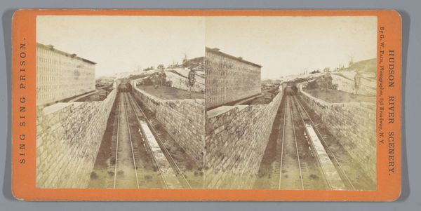 Editor: Here we have "Gezicht op de steengroeve van Sing Sing Correctional Facility," a photograph, specifically an albumen print, taken sometime between 1871 and 1877 by G.W. Pach. It depicts a stone quarry, stark and somewhat desolate. It feels industrial, but also quite still. What symbols or meanings strike you in this image? Curator: This image certainly speaks volumes through its stark contrasts. The stone itself, quarried by prison labor, carries a weighty symbolism. Rock often represents foundation and permanence, yet here it’s being violently extracted, signifying disruption and a kind of forced creation. Notice the sluice. Does that pathway leading down hint at a relentless, even predestined, path in life? Editor: That's a fascinating point, especially considering the location is a prison quarry! It almost feels like a visual metaphor for the lives of the inmates. Curator: Precisely! And consider the broader implications. The Hudson River School celebrated the American landscape as a symbol of promise and opportunity. This photograph subtly subverts that narrative, replacing pastoral beauty with a landscape scarred by labor and confinement. How does this stark setting juxtapose with the traditional imagery of freedom and open spaces associated with American landscape art? Editor: So, it's almost a commentary on the darker side of progress and industrialization, highlighting the human cost. I guess I didn’t fully appreciate that juxtaposition at first. Curator: Indeed. It prompts us to consider whose labor built this nation and at what price. And how cultural narratives can sometimes overshadow more uncomfortable truths. Editor: I see it so differently now. Thanks for unveiling some of the hidden depths in this image! Curator: My pleasure! Discovering those layers is where the true richness of art lies.