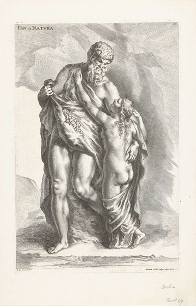Editor: So, here we have Bernard Picart's engraving, "Standbeeld met de roof van Proserpina," dating from around 1699 to 1733. The dramatic scene feels very... well, Baroque, with all the swirling motion and intense emotion. What do you see in this piece, considering its historical context? Curator: What I see is a visualization of power dynamics that have been consistently excused, even celebrated, in art. This print, based on a marble sculpture, depicts the abduction of Proserpina by Pluto, a foundational myth, yes, but one rooted in violence against women. How does viewing this through a contemporary lens impact your interpretation? Editor: I guess I hadn't thought about it that way, the focus being on the skill of the engraving and the dramatic poses. But it's impossible to ignore the violent act being depicted. It really forces you to question what we consider beautiful or classic, right? Curator: Exactly. And it begs the question of why stories of male dominance and female subjugation are so frequently aestheticized. By engaging with feminist theory, for instance, we can unravel the underlying social power structures reinforced by these artistic representations. Do you think that knowing that this artwork is located at the Rijksmuseum plays a part in this artwork's reception? Editor: Definitely. Museums inherently validate the artwork within their collections. This discussion really highlights how important it is to be critically engaged with even the most celebrated art. Thanks for this insightful context! Curator: My pleasure! Art is always in dialogue with the present, and we must acknowledge that.