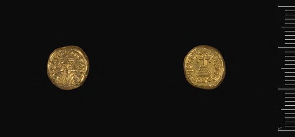 Curator: What catches my eye immediately is the golden sheen of this Half Stater of King Pumiathon. It practically glows! Editor: It’s remarkable, isn't it? This coin, made by Pumiathon himself, is more than just currency; it’s a statement of power from Kition. Curator: A power nugget! I love how the imagery, though small, tells a story. Is that a little Hercules figure I see, battling a lion, perhaps? Editor: Precisely. The imagery reflects the artistic influences and political ambitions of the time. Think about the role such objects played in projecting authority. Curator: It makes you wonder about all the hands it passed through, the stories it could tell if it could talk. It's a tiny time capsule. Editor: Absolutely. It's a privilege to connect with the past in such an intimate way through artifacts like this. Curator: A tangible whisper from a long-lost world, gleaming with echoes. Editor: Indeed, a testament to the enduring allure of art and its power to transcend time.