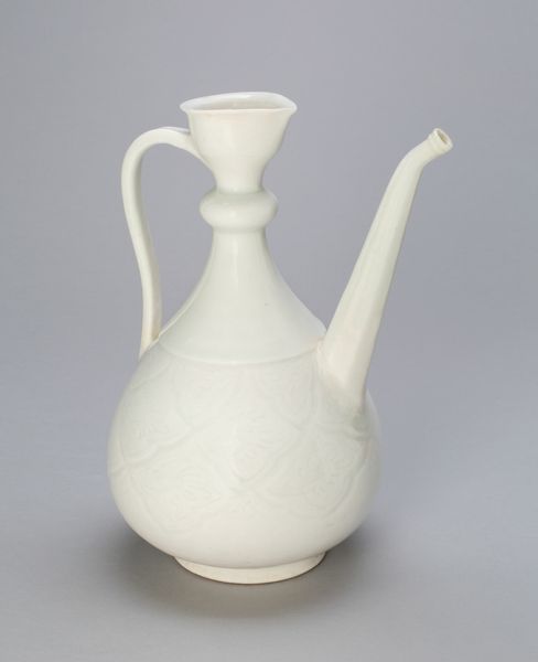 Curator: Lalique’s “Vaas ‘Gourdes’” crafted in 1914, immediately strikes me with its delicate frostiness. It’s as if it were pulled straight from a winter garden. What are your thoughts? Editor: Well, the gourd motif speaks directly to the decorative art style that dominated Lalique’s era, emphasizing the organic forms found in nature. These motifs served as an alternative visual system within an industrialized world. It is very accessible to an emerging middle class eager for luxury. Curator: I agree about that tension. From a purely aesthetic perspective, the contrast between the opaque gourds and the translucent background generates visual interest. There is play with positive and negative space and you get a real sense of volume and depth, despite its somewhat limited palette. Editor: Precisely! It is fascinating how Lalique transformed utilitarian objects such as a vase into coveted commodities during this period. Pieces like this speak to anxieties over food shortages during times of conflict and war; notice how heavy and pregnant these vessels look. Curator: Absolutely! This era saw a shift toward functional objects, especially tableware as a way for many to participate in high art. The almost ghostly forms seem to glow from within and they're so tactile—I wonder how the glazing enhances that sensory experience? Editor: The choice of glass as a medium reinforces a narrative around industrial production and technological advancement, appealing to a broad market concerned with modernization. These gourds serve a cultural role—bridging societal classes by aestheticizing forms linked both with food and a common history of survival and abundance. Curator: Interesting! All this to say that in some respects the visual vocabulary becomes universal, yet deeply contextualized within a moment in time. I find the interplay here fascinating. Editor: As do I. The ‘Vaas Gourdes’ becomes a compelling historical object by uniting materiality and historical sentiment.