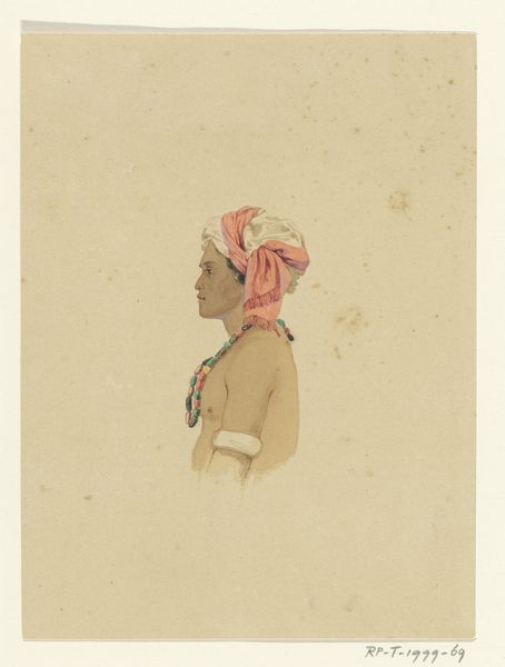 This is Jacques Etienne Victor Arago’s lithograph of a man from Ombay in Indonesia. Arago was part of a French scientific expedition in the early 19th century. The print captures the complex and often fraught dynamics between colonizer and colonized. It reflects the scientific and social norms of the time, which often exoticized and othered non-European people. The inscription "Anthropophage d'Ombay" tells us much about the perceptions of non-Western people. It is a term that reduces the sitter to a single, sensational characteristic. In viewing this portrait, one must consider how cultural biases shaped the creation and reception of this work. Despite its problematic context, the portrait also offers a glimpse into the identity and appearance of a man from Ombay, whose name and personal story remain unknown to us. His gaze is direct, unsmiling, hinting at the complexities of human identity. Arago's work invites us to reflect on the power dynamics inherent in portraiture.