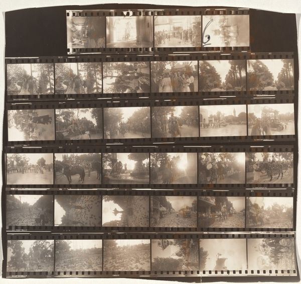 Editor: This is one of Josef Albers' print slides, archived at the Harvard Art Museums. The composition is a series of nested rectangles around a central circle. The limited palette creates a sense of starkness. What role do you think Albers's teaching at the Bauhaus and Black Mountain College played in works like these? Curator: Albers's Bauhaus background emphasized the integration of art, craft, and technology. His emphasis on material exploration and industrial production heavily influenced the art of his time. How do you think Albers's abstract formalism affected its reception in the socio-political climate? Editor: It may have allowed for broader interpretation and less direct political readings, making it more palatable to a wider audience perhaps? Curator: Precisely. Abstraction provided artists with a powerful tool for social commentary while navigating the complexities of the art market and prevailing ideologies. I found it to be quite a breakthrough, what about you? Editor: Definitely. It shows how art can be both aesthetically innovative and socially relevant.