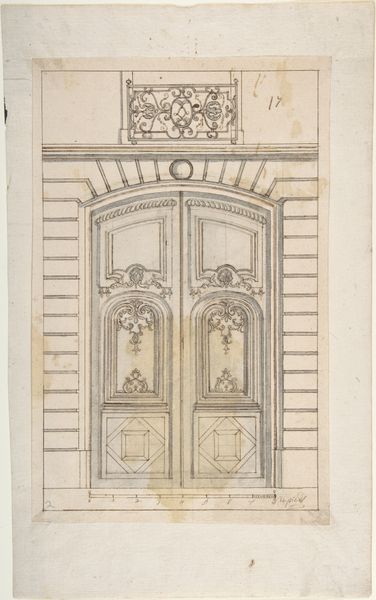 Editor: Here we have Jacques Androuet Du Cerceau's "Design for a Door Frame" from 1565-1570, a drawing, almost print-like in its detail, housed at the Metropolitan Museum of Art. It feels quite imposing and very architectural. How do you interpret this work from a historical point of view? Curator: This drawing offers a fascinating insight into the aspirations of 16th-century elite society. It's not just a door; it's a statement of power and status. Consider the socio-political context: France was grappling with religious wars, and the aristocracy sought ways to assert their authority and cultivate the arts, so a grand architectural design would become the way. How do you see that playing out in the design itself? Editor: Well, there's definitely a Roman influence in those classical columns and that triangular pediment. Curator: Exactly! The conscious borrowing from classical antiquity was a visual signal, associating the patron with the grandeur and legitimacy of the Roman Empire. And that elaborate decoration above the door--angels, foliage--speaks to wealth and refinement. Remember that access and control were a function of that. Doors controlled and limited visibility and passage, allowing those in charge to impose their socio-political status upon guests and onlookers. Editor: So it’s less about the function of a door, and more about projecting an image. Curator: Precisely. Think of the symbolic value: Who could pass through this doorway? What messages are being conveyed about power, taste, and belonging? Consider how this design, if realized, would shape social interactions within that space. Editor: I see that. So it really speaks volumes about the power structures of the time, something I hadn't considered at first glance. It’s a door that screams social hierarchy! Curator: Absolutely, and understanding those power dynamics allows us to appreciate this drawing on a much deeper level. It’s a window into the cultural values of 16th-century France.