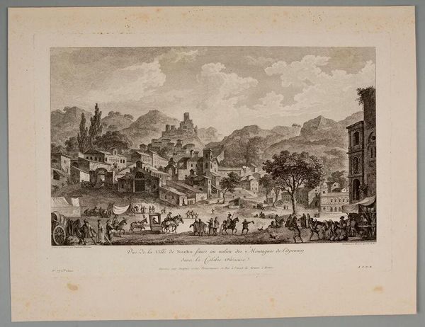 Curator: This is "Newcastle on Tyne" by Thomas Goff Lupton. It captures a bustling port scene, but I'm struck by how hazy and dreamlike it feels. Editor: It certainly presents a romanticized view. We see this thriving port city not as a center of industry, but as a picturesque scene, softened, perhaps reflecting Britain's burgeoning global power and the narratives it constructed. Curator: The formal composition guides our eye—the way the river curves, leading us from the foreground figures to the distant architecture and smoky sky, it's quite masterful. The gradations of tone create depth. Editor: And consider the figures in the foreground. Are they observers, beneficiaries, or perhaps even casualties of this economic engine? Their positioning invites critical questioning of power dynamics. Curator: True, the contrast between the working river and the lounging figures invites reflection. The artist positions us to ponder labour and privilege. Editor: Ultimately, the artwork becomes a visual document ripe for deconstruction. Curator: Indeed. It is a landscape imbued with the nuances of its time. Editor: A layered perspective to carry as we explore further.