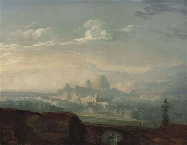 Editor: So this is "Avignon Seen from Villenueve les Avignon," an oil painting by Camille Corot from 1836. It’s remarkably peaceful. It depicts the city from afar and the composition gives a sense of gentle distance. What do you see in this piece beyond the initial serenity? Curator: What strikes me is not just the aesthetic appeal but also the historical moment Corot captures. Think about the socio-political context: 1836 France. The legacy of the Revolution still resonates, ideas of nationhood are solidifying. Here, Avignon is not just a pretty landscape but a site of history, once home to Popes, now firmly part of a France grappling with its identity. Does seeing it as plein-air affect how you perceive the cultural message? Editor: I hadn’t considered that aspect. I was mostly drawn to the composition and the light. Knowing it was painted outdoors does make me think more about Corot's immediate experience, how he chose to frame that vista. Curator: Precisely. And who has access to that vista? Who can afford the leisure to travel and paint? Landscape painting isn’t just about nature; it's about ownership, access, and representation. Think about the social hierarchy implicit in the very act of painting this scene. Whose perspective are we seeing? Editor: So, beyond the artistic technique, we are seeing a particular viewpoint that is framed by power. The beauty is intertwined with complex societal structures that were taking hold. Curator: Exactly! And by recognizing those power structures, we are empowered to interrogate not only the historical artwork but contemporary narratives of landscapes. It prompts questions, doesn’t it? Editor: It certainly does. I now see so much more in Corot’s seemingly placid cityscape. Curator: And hopefully you also see art is never truly neutral ground!