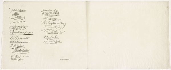 Editor: This ink drawing, "Twelve youth drawings," is attributed to Franz Pforr, likely created sometime in the 19th century. The calligraphic script definitely establishes a sense of historical distance. How should we interpret this work, considering the artist's intentions and the artistic movements of that era? Curator: What stands out to me is the script itself, its presence divorced from any immediate representational subject. Think about Romanticism – its focus on the individual, on emotion, on the subjective experience. But also, let’s consider the rise of nationalism in the 19th century. Handwriting, calligraphy… could these be interpreted as assertions of cultural identity, quiet acts of self-expression in a world of increasingly formalized power structures? What does the act of sketching and scripting in a “personal sketchbook” tell us about the creator, about the period? Editor: So you're suggesting that even this personal writing, seemingly detached, could be politically charged within its time? I hadn't thought about the nationalist element so explicitly. Curator: Precisely. It invites us to challenge the very idea of a purely "personal" or apolitical artwork. Whose youth are being represented? Who has the right to be calligraphers? Also, how do issues like gender and class play into that right? Does the calligraphy style suggest an intention, or identity being crafted? What else catches your eye? Editor: Well, I was mainly struck by the style. Now, seeing this through a historical lens, it gives the whole image greater meaning! Curator: Indeed. It urges us to consider art not just as aesthetic objects but as historical artifacts deeply enmeshed within specific social, political, and cultural landscapes. And importantly, to keep asking questions. Editor: I’ll certainly remember that moving forward. Thanks!