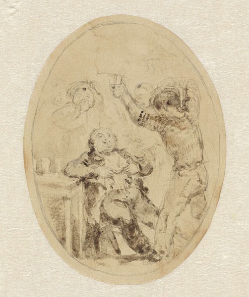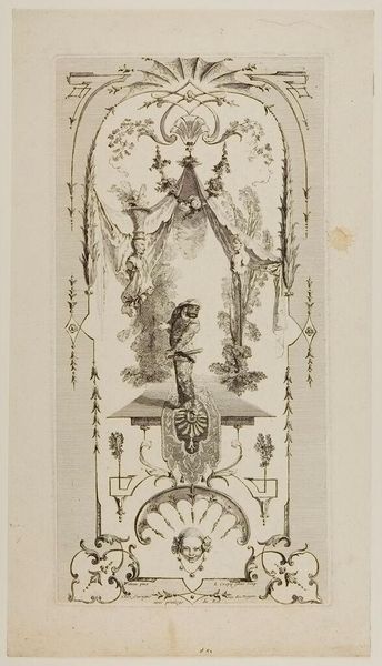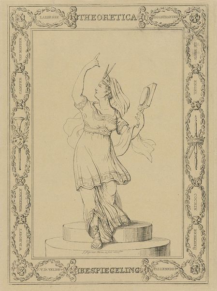 Editor: Here we have Giovanni Battista Piranesi’s print, "Diana Archer." It's difficult to put a date on it, but it’s done in pencil and engraving. There’s a real sense of motion conveyed by the figure, it’s like she's captured mid-leap. What strikes you when you look at this piece? Curator: Immediately, I'm drawn to the linear quality. Note how the engraving delineates form, creating volume without relying on extensive shading. The very essence of the figure and frame are lines - structural and refined, wouldn't you agree? Editor: Definitely. It’s interesting how the figure of Diana fills the oval frame, creating a dynamic tension between the organic form and the geometric shape. Curator: Precisely. Observe the meticulous details within the frame itself - repeated patterns that act as a counterpoint to the figure’s implied movement. Do you find that this tension elevates the overall composition? Editor: Yes, the stillness of the frame seems to amplify Diana's dynamism. But it is more than that. By capturing the likeness of something it ceases to exist entirely in one zone of artistic style only. The image, in essence, escapes clear artistic movement categorization. Curator: A valid point! That resistance could be deliberate. By pushing the boundaries, Piranesi highlights how line can both define and liberate form. Something I'll be considering further. Editor: Absolutely, it's offered me a whole new view into his practice.