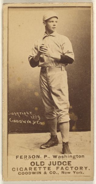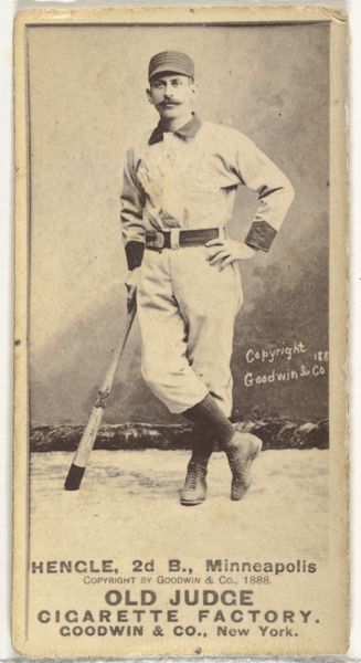 This is “Gustave Louis "Gus" Klopf, Pitcher, St. Joseph Clay Eaters,” a baseball card from the Old Judge series, created by Goodwin & Company in the late 19th century. These cards, distributed with Old Judge Cigarettes, offer us a glimpse into the cultural landscape of a nation grappling with industrialization and its leisure activities. The image captures Klopf in the midst of his pitching motion. Consider the cultural significance of baseball at this time. For many working-class men, it was not only a form of entertainment but also a source of local pride and identity. Yet, this seemingly innocent portrayal is also an advertisement for a product that we now recognize as a serious health hazard. The romanticized image of athleticism is intertwined with the promotion of tobacco consumption, reflecting a complex negotiation of values. Think about what this card represents: the intertwining of commerce, sport, and identity in a rapidly changing American society. How does it make you feel to know about these layered meanings?
