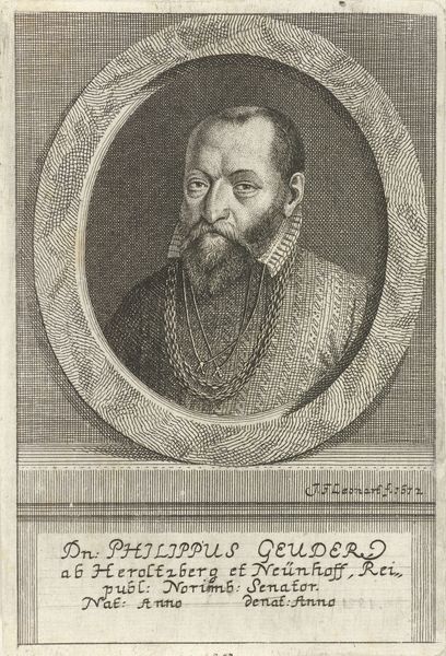 This is a portrait of Petrus Ramus, made by Jean-Charles François sometime in the 18th century using the burin technique. Ramus was a French humanist philosopher, logician, and educational reformer who lived during the 16th century. The image captures Ramus in profile, his gaze directed slightly upwards, perhaps symbolizing his intellectual pursuits. We see him here, immortalized through the artistry of François, at a time when the printing press was enabling the wide dissemination of knowledge. Consider how this image reflects the cultural and intellectual values of its time, where reason and knowledge were increasingly celebrated. Despite his intellectual contributions, Ramus was killed during the St. Bartholomew's Day Massacre, a dark chapter in French history marked by religious persecution. This portrait serves as a poignant reminder of the human cost of ideological conflict and the enduring power of ideas. It evokes questions about the relationship between intellectual progress, religious tolerance, and social justice.