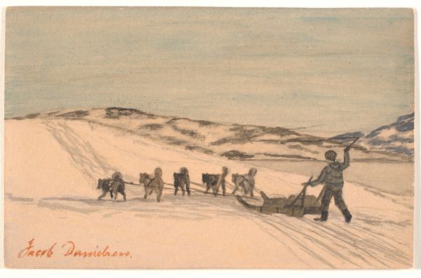 Sir David Wilkie made this watercolor titled "Landscape with Figures and a Carriage". Though undated, it was likely created in the early 19th century. Wilkie was a celebrated Scottish painter known for his genre scenes depicting everyday life. This small landscape presents a scene of transit and social interaction. We see figures on foot and in a carriage, set against a vast, open backdrop. The landscape is rendered with delicate washes of color, evoking a sense of spaciousness. Wilkie, as an artist of his time, navigated the complex social dynamics of class and status. His work provides glimpses into the hierarchical structures of 19th-century society, while offering a personal reflection on the relationships between people and place. "The beauty of art is that it allows us to see the world through another's eyes" Wilkie once said. The artwork invites us to consider the ways in which identity and social roles are enacted within specific landscapes and to reflect upon the artist’s own experiences and perceptions of his cultural and social environment.