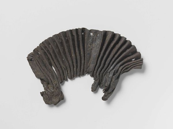 Editor: Right, so this curious artifact is called "Eccentric Flint," created around 200 by an unknown Mayan artist. It's housed here at the Art Institute of Chicago, and is a rather perplexing flint carving. It strikes me as both beautiful and slightly menacing, like an ancient crown of thorns, or an intriguing comb, depending on how you view it! What’s your take on this enigmatic piece? Curator: Oh, I adore how you immediately picked up on its duality – that tension between beauty and potential harm! It *is* rather comb-like! These "eccentric flints" are fascinating because their function isn't entirely clear. They certainly weren't used for everyday tasks. To me, the artist's intention vibrates off this sculpture like a string about to snap; all that carefully chipped flint is incredibly precise. Can you feel the artist's hand lingering? Editor: I think so, though "lingering" makes it sound slow... there's a raw immediacy here that feels like they'd made the decisions very quickly, but precisely, as if working at a rate to outrun time... Curator: Exactly! A sort of fever-dream focus. Some archaeologists believe they were used in ritual practices, perhaps as offerings or symbols of power and status, but like trying to recall a dream, their actual ritual importance to the Mayan people remains largely unknown. Editor: Knowing this isn't just some discarded tool makes it so much more… meaningful. And seeing the geometric shapes takes on a whole new symbolic weight. Curator: Indeed! It's a potent reminder that even the simplest materials can be transformed into profound expressions of human creativity. Imagine, creating something so delicate and evocative out of *flint*! Do you think they might've seen reflections of cosmos in the stone, do you suppose? Editor: Maybe? Thinking about what might’ve mattered to that artist makes me think differently about what might matter to me today! Curator: Nicely put.