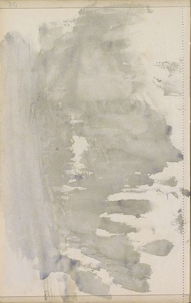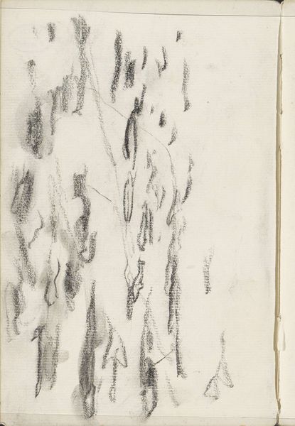 Editor: We’re looking at ‘Studie,’ a pencil drawing by Isaac Israels, created sometime between 1886 and 1934. The sketch is mostly empty, with some dark lines and smudges on the left side. It has an unfinished, almost haunting quality. What do you see in this piece? Curator: It's interesting to consider this drawing purely from the standpoint of its formal qualities. Note the stark contrast between the densely worked graphite on the left and the largely untouched space on the right. Consider how the artist creates tension and visual interest simply through the juxtaposition of mark-making and void. Editor: So, it’s about the balance – or imbalance – of those elements? Curator: Precisely. It invites contemplation on the nature of perception itself. What constitutes an image? Where does form begin and end? How much information is needed to suggest a landscape or, perhaps, even a figure obscured by shadow? Editor: The “empty” space, then, isn’t really empty. It’s as important as the lines. Curator: Precisely. Semiotically, we might examine the function of absence as a signifier. The blank space becomes charged with potential, inviting the viewer to actively participate in the completion of the work. What are your thoughts? Editor: It’s almost a collaboration with the artist, then, our minds filling in the blanks. That tension you mentioned definitely draws you in. I see the technique more now. Curator: Indeed. A formalist lens directs our gaze inward, towards the intrinsic elements, allowing us to appreciate the drawing not merely as a representation, but as an autonomous object of aesthetic inquiry.