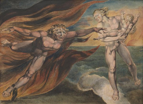 Editor: We’re looking at *Aeneas Saving Anchises from Burning Troy*, by Adam Elsheimer. It's an oil painting depicting figures amidst a chaotic scene of fire and smoke. The scene feels dramatic and intense. What do you see in this piece? Curator: This painting is deeply embedded in the political climate of its time, regardless of its precise creation date. The Aeneas myth, the heroic flight from Troy, was potent in Renaissance and Baroque culture, acting as a foundation myth for numerous European dynasties, including the Habsburgs who, during Elsheimer's time, styled themselves as inheritors of Roman glory. Notice how the artist chooses to represent the key figures? Aeneas is the virile young hero carrying his aged father Anchises. How does this strike you in the context of dynastic power? Editor: It feels almost like a staged moment of responsibility, solidifying power through a show of respect for the past and future. Is that reading too much into it? Curator: Not at all! This theatrical display of pietas—Roman virtue signaling devotion—served as an argument legitimizing the established social order. And think about the medium, oil paint, which allowed for realistic and dramatic renderings of light and shadow, all amplifying the painting's emotional and rhetorical impact. Can you see how the artist strategically uses chiaroscuro? Editor: Yes, the figures are brightly illuminated against the dark, smoky background. That contrast makes them stand out, but it also heightens the overall sense of drama. Curator: Exactly! Art in Elsheimer’s time actively shaped perceptions and reinforced dominant narratives of leadership and cultural identity. So, beyond the aesthetics, there’s a clear ideological function here. Editor: So, it is both a beautiful piece and a form of cultural commentary, or even propaganda, depending on how you look at it. Thanks for shedding light on that. Curator: Indeed, reflecting on this artwork truly underscores how intertwined art and power are. I'm glad we had this discussion.