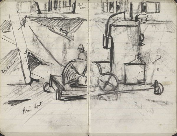 Editor: Here we have Rudolf Gudden's "Interior of the Great Spinning Mill of Edam," created around 1894. It’s a pencil drawing, and what immediately strikes me is the geometry of the machinery – all these circles and rectangles creating this intricate composition. What do you see in this piece? Curator: Initially, the dominance of geometric shapes establishes a clear structural order. Notice how Gudden contrasts the rigid, linear framework of the machinery with the subtle gradations of tone achieved through pencil. This interplay generates a visual tension, a kind of dialogue between form and texture. Consider how the lines create not just shapes but also imply spatial depth, leading the eye through the factory interior. How does this spatial arrangement affect your experience of the drawing? Editor: It does make me feel like I'm looking *into* the factory, almost as if I'm there, observing. I hadn't considered how much depth the lines create. Curator: Precisely. The formal arrangement guides your perspective. Furthermore, contemplate the texture created through the varying pencil strokes. The lines build to construct a coherent visual reality, almost like structuralism and semiotics uniting to enhance our perceptions. Do you observe any visual cues in the materiality? Editor: Now that you mention it, the varying shades do imply the difference in texture of the material. The rough and smudged sections hint at a coarse, industrial feel. It’s like the geometry provides the order, but the textures hint at reality. Curator: Exactly. It exemplifies how the artwork generates meaning through its internal relationships. Editor: I'm starting to see how the artist manipulates shape, line, and tone to guide the viewer's eye and understanding. Curator: Yes, by carefully considering these components, we gain insight into the formal language of the artwork. Editor: Thank you, I found it insightful to explore it in these terms.