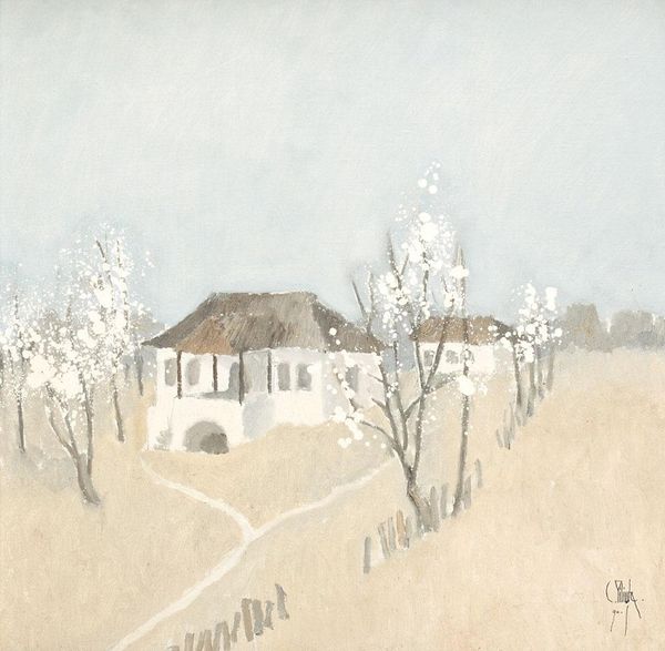 Constantin Piliuta painted this winter landscape, probably in 1981, and it feels like a memory, not quite real. The strokes are soft, almost tentative, creating a scene that's more felt than seen. You can almost hear the quiet of the snow. Looking closely, you can see how the paint is laid down in layers, not thick, but with enough body to catch the light. It’s like Piliuta was building the scene, stroke by stroke, finding the forms within the paint itself. Note the trees. They're not just black lines, but built from many little marks. I can see him, standing in front of his easel, thinking about the space *between* the branches as much as the branches themselves. The color palette is incredibly restrained, mostly whites and grays, with just a hint of the warm houses to stop you from being overwhelmed. Piliuta reminds me of Morandi. Both had an incredible eye for the everyday, turning simple subjects into something really beautiful. Ultimately, art is about this kind of conversation, isn't it? Different artists, different times, all speaking to each other through the language of paint.