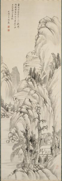 Gu Yun created this landscape painting in the manner of Wang Yuanqi using ink on paper, a traditional medium in Chinese art. The controlled strokes of the brush, loaded with varying densities of ink, define the contours of the mountains, trees, and water. Note the repetition of forms and textures, achieved through careful layering and blending. The result is a scene that feels both monumental and intimate. The techniques employed here demanded years of practice and a deep understanding of ink's properties. The evenness of the tones, and the variation in the brushstrokes, speak to countless hours of patient labor. Skills like these, passed down through generations, were highly valued in a society that saw artistic creation as a form of self-cultivation. By focusing on the materials and processes behind this artwork, we gain a deeper appreciation for the cultural values embedded within it, and for the artist’s skill.