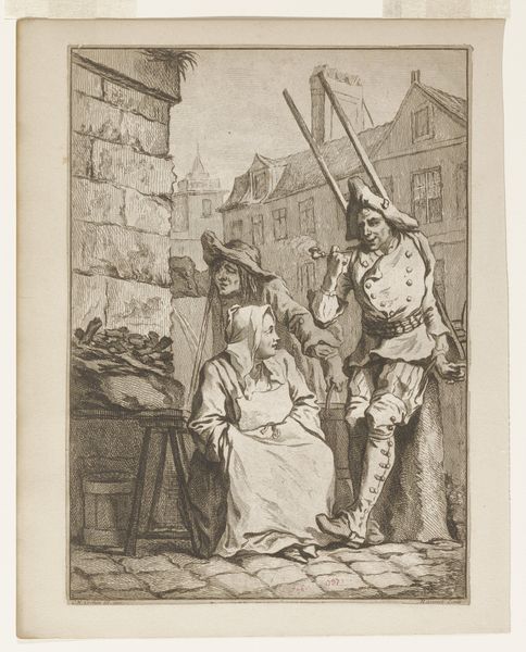 Curator: Here we have Gabriel Metsu’s “The Herring Seller,” painted around 1661 or 1662. It is part of the Rijksmuseum's collection and offers us a glimpse into everyday life in the Dutch Golden Age. Editor: My first thought? This has that cozy, dimly lit feeling typical of Dutch painting, like you’re peeking in on a private moment. Though, between the grimace on that seller and the wary glance from the customer, I'm not sure "cozy" is quite right! Curator: You've picked up on an interesting tension. Metsu specialized in these genre scenes. Paintings that are less about heroic deeds or portraits of the elite, but snapshots of regular people going about their day. Editor: Snapshots indeed. It's like Metsu just wandered into a marketplace, sketched this on the spot, and left with a subtle smirk, amused at what he just saw. I imagine this kind of interaction was as commonplace as getting coffee is today. Though less convenient, definitely less convenient! Curator: The detail he includes serves to legitimize this depiction. Consider the aging of the seller's face, the detail on the texture of her clothes. Metsu also includes visual cues of trade and labour, adding credibility to the scene. These scenes affirmed the value of the merchant class and are interesting examples of realism for their time. Editor: It makes you wonder, though, what else isn’t included. What happens just before, or just after, this frozen moment. It strikes me as deeply theatrical. Did Metsu stage this interaction, or something similar? Or is he an incredibly good observer? Or maybe a bit of both? Curator: These kinds of paintings played a specific role in Dutch society. They reflect an emerging national identity rooted in trade and industriousness, but they also promoted ideas about community through their depictions of common places and situations. So, realism—yes—but always serving a larger cultural purpose. Editor: It also kind of flips the whole "art world" thing on its head. No grand landscapes or mythical creatures. Just a woman buying a fish. How incredibly…real. How subversive. But how like, fishy. Curator: Precisely! Metsu is taking everyday life and placing it in the context of fine art. It makes you wonder how these seemingly small paintings influenced societal values or how perceptions of everyday life developed through viewing these canvases. Editor: In a way, maybe Metsu is reminding us to look closer at the small moments in our lives, because, who knows, maybe those fleeting encounters are the very things that reveal what really matters in a given time. Thanks for sharing. Curator: My pleasure!