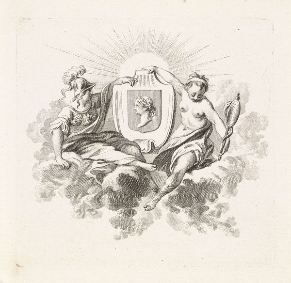 Editor: This is "Gedenkteken voor Petrus Pijpers," a 1789 engraving by Theodoor Koning, currently housed at the Rijksmuseum. I'm struck by the monumentality conveyed through such fine lines. What compositional elements draw your attention, and what is your reading of the symbolism used? Curator: Observe the clarity of line and form, emblematic of Neoclassical aesthetics. The severe profile, encased within a circular frame, evokes classical cameos. The symmetrical arrangement of the objects atop the monument—note the lyre juxtaposed with what appears to be an oil lamp—suggest a harmony between artistic pursuits and enlightenment. The radiating lines above might represent intellectual illumination. Do you notice the books scattered at the base? Editor: Yes, they seem deliberately placed. Is there significance to their disarray? Curator: Consider the composition. The ordered structure of the monument is offset by the scattered books and foliage. This might represent the messy reality of knowledge acquisition, or perhaps a transition from classical order towards the burgeoning Romantic sensibilities that would soon follow. Also note, in comparison, the inscription's ordered, geometrical layout. It reinforces this composition as something of structural balance. What, then, does that equilibrium evoke? Editor: I suppose that Koning's intention was to represent order over disorder. Curator: The composition invites contemplation on themes of knowledge, memory, and the delicate balance between intellect and inspiration. It’s not merely representational; the formal qualities themselves convey meaning. Editor: So, by looking at the elements present on the page, their texture, and their arrangement, we're able to understand the intention of the engraving without relying solely on historical context. Fascinating! Curator: Precisely. By carefully analyzing the intrinsic properties of the work, we can extract a wealth of meaning. It's a rewarding, albeit rigorous, approach.