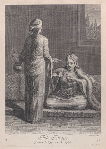 Émile Bayard created this engraving, titled "Persians in Bombay," likely during the late 19th century. This work offers us a glimpse into the cross-cultural encounters of the time, against the backdrop of British colonial India. Bayard's image captures a moment of cultural exchange, but it also invites us to consider the power dynamics at play. As a European artist, Bayard was working within a colonial context that often exoticized and othered non-Western subjects. The sitters’ clothing and stature are carefully rendered, possibly to convey an air of authenticity and cultural specificity. Consider how these figures are presented: what stories do their garments, headwear, and demeanour tell? And what assumptions might a European audience at the time have made about them? The work serves as a reminder of how cultural representation is always shaped by the perspectives and biases of the artist and the historical context in which they operate.