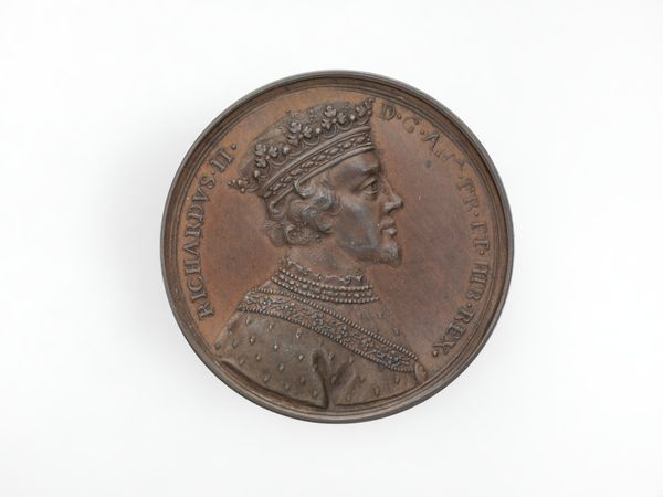 Curator: Bertoldo di Giovanni, around 1480, crafted this bronze medal, its dual sides offering two distinct portraits, so to speak, of Sultan Mehmed II. Editor: It has this incredibly tactile quality, doesn’t it? I immediately want to touch it. The raised profile against the flat plane...it’s satisfying to observe how light plays across the contours of his turban and beard. Curator: Indeed. Medals like this were a way for rulers to disseminate their image and project power. On one side, we have Mehmed in profile, adorned with inscription, idealizing him as ruler of both Europe and Asia. The other, as you mentioned, shows a triumphal chariot, further emphasizing his military strength, most famously, taking of Constantinople. Editor: Note the incredible detail for such a small object. The textures are rich and distinct. Look at the difference between the smooth planes of his garment compared with the detailed treatment of his turban’s folds, or his softly modeled cheek. Curator: The Italian Renaissance was fascinated by classical antiquity, so Mehmed, eager to align himself with powerful leaders of the past, hired Italian artists. He was clearly trying to cement his place on the world stage. Editor: These details add layers of richness. For instance, look at the way di Giovanni created an allegorical visual relationship by pairing Mehmed’s bust on the front with the chariot scene of conquest. This side speaks of intellectual curiosity merging with strategic vision. The play of circles is compelling: the medal itself, his turban wrapping his face... Curator: These medals highlight cross-cultural exchange. Here, the Ottomans were very interested in leveraging European artistry. Yet, Europeans also portrayed him, a figure both respected and feared, for their own varied and political purposes. Editor: When looking at this piece, I think that these types of material forms can communicate cross-cultural ideals about global relationships and historical documentation in ways we might miss. Curator: Agreed, considering the material history—the bronze itself and its transformation—opens other perspectives of this remarkable moment in history.