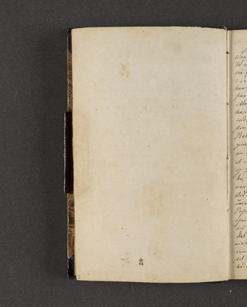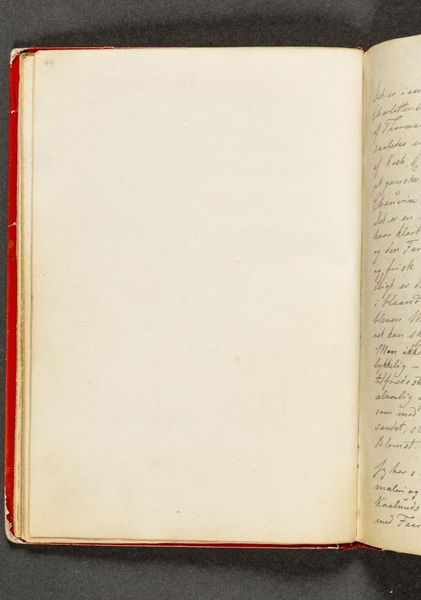 Here we have a spread from Johan Thomas Lundbye's "Rejsedagbog," a travel journal, its pages bearing witness to journeys unknown. The book's form, with its simple rectangular pages and the spine's textured edge, dictates the structure of our experience. The stark contrast between the dense script on the left page and the relative emptiness of the right creates a visual tension. This division offers us a framework for understanding Lundbye's world: a dialogue between recording and experiencing. On one side, observations and reflections are carefully inscribed. On the other, a space for the unwritten, the potential of future entries or perhaps the inexpressible moments of travel. The journal becomes a semiotic space, where language and absence engage in a silent conversation. Consider how the book, as a container of thoughts and images, destabilizes the notion of a fixed narrative. It remains open, inviting interpretation and speculation. The act of turning a page, of moving from left to right, mirrors the journey itself. Each page turn marks a transition, a shift in perspective, emphasizing that meaning is not static but unfolds over time and through interaction.