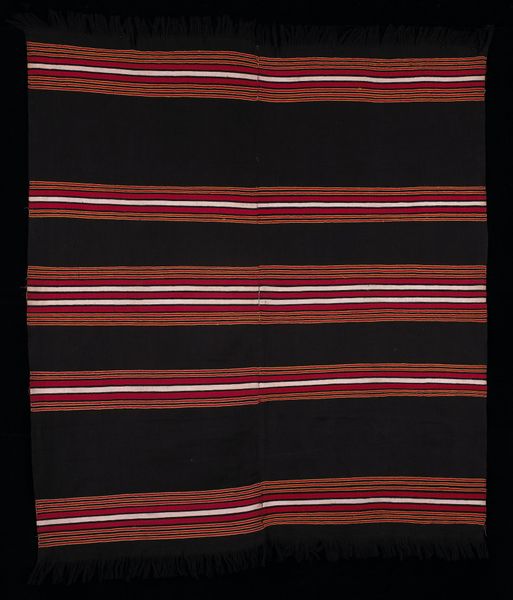 This tube skirt was created by an artist of the Khmu people using cotton. Isn't it interesting how an object like this can speak? I'm drawn to the way the bands of color interact with the solid black field above. This contrast sets up a kind of conversation between restraint and expression, structure and freedom. Look at the subtle variations within the stripes: the shifts in hue, the slight imperfections. There's a real sense of the hand at work, of a process unfolding organically. The texture is so tactile, you can almost feel the give of the threads as you imagine the weaver at the loom. The more you look the more the colors come to life, each one humming against the others. You know, this reminds me a little of the work of Anni Albers, who brought a similar painterly sensibility to her weavings. I think both artists show us how even the most functional of objects can be a site of deep aesthetic exploration.