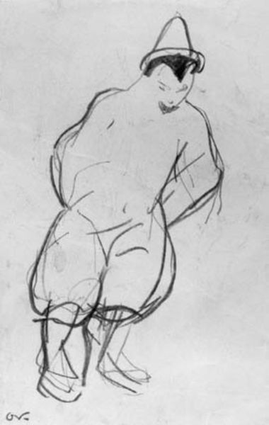Aristide Maillol made this drawing of a standing nude, torso turned to the right, with graphite on paper. The whole thing feels tentative, almost like the artist is feeling around for the form. It's very process-driven, right? You can see the marks, the erasures, the adjustments. It's like we're witnessing the act of creation, not just the finished product. I'm really drawn to the way Maillol uses line in the torso. The lines aren't hard or defined, they're soft and suggestive, almost like a whisper. And the way he builds up the form with these delicate, overlapping lines, it gives the figure a real sense of volume and weight, even though it's just on paper. It reminds me a bit of some of Rodin’s drawings, that same sense of searching, of capturing the essence of the figure through a kind of intuitive mark-making. Ultimately, this drawing feels like an invitation. It's not about perfection or accuracy, it's about exploration, and about embracing the messy, unpredictable nature of art-making.