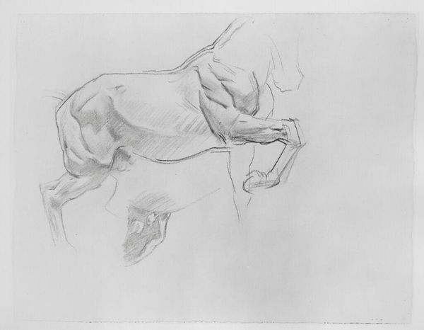Curator: This is John Singer Sargent’s study, "Bent Legs and Feet, for 'Gog and Magog,' Boston Public Library." Editor: There's an undeniable vulnerability to this study – the stark exposure of the subjects makes it feel unsettling. Curator: Sargent's preliminary work was instrumental in the larger Boston Public Library mural project. The figures of Gog and Magog, referenced in the title, are biblical giants. Editor: Knowing this was a study for biblical giants gives it a potent intersection of power and fragility—the artist captures the weight of history, in a sense. Curator: The figures themselves, Gog and Magog, represent chaos and destruction. Sargent's portrayal highlights the power of religious and historical narratives. Editor: It seems a bit unsettling to see these foundations of power portrayed so intimately in a study. Curator: Indeed, this drawing allows us to see Sargent grappling with potent symbols. Editor: This adds a layer of complexity that compels us to reconsider the power dynamics behind those biblical figures.