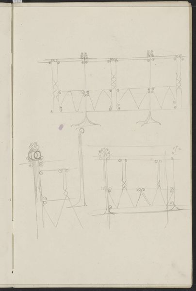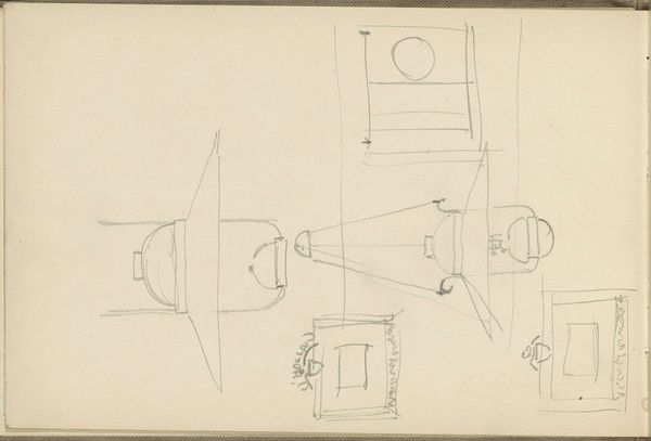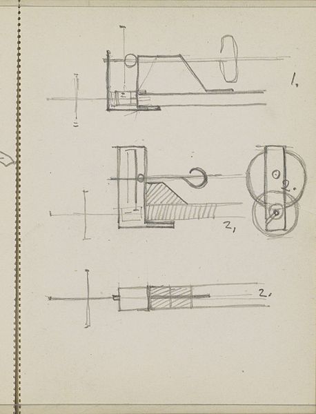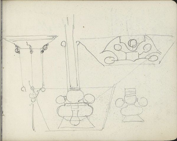This sheet of studies for electric lamps was made by Carel Adolph Lion Cachet, probably around the turn of the century. It’s cool to see the making process laid bare, the tentative first thoughts of the artist laid out in pencil. You can almost feel Cachet thinking through the designs, line by line. What I love is the way the pencil marks aren't overworked; they're allowed to be light and airy, full of potential. Take the curly flourishes on the lamps; they're so casually drawn, but they give the designs a touch of elegance. This reminds me a bit of the design work of someone like William Morris, who was also interested in bringing beauty to everyday objects. But Cachet's lamps have a more modern feel, a hint of the machine age. It's like he's trying to reconcile the handmade with the mass-produced, which is something artists are still grappling with today. Ultimately, it's the not knowing that makes this piece sing.