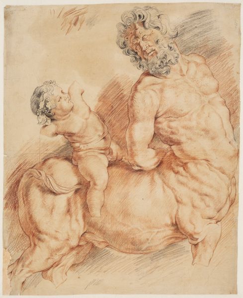 Editor: This is "Penitent Magdalene," by Sebastiano Conca. It's a drawing, though the museum lists it as an intaglio print in chalk and paper. I’m struck by the color; that reddish-brown chalk gives it an immediacy, even though it’s a religious subject with the Magdalene, angels, and a skull. What grabs your attention when you look at this piece? Curator: It's the very tension you point out: the earthy medium grounding a very ethereal scene. Look at the laid paper and the quick, almost frantic, strokes. Conca is showing us the labor involved. This isn’t some effortless creation. He’s using these relatively inexpensive materials to portray what would traditionally be considered a high art subject. Consider the devotional function it might have served and the mode of reproduction involved. How does the relative availability of prints influence devotion versus unique images? Editor: That's fascinating. It does change how you see it. Before, I was just thinking about the emotion in the Magdalene's face. Now, I am seeing how this image would circulate to a wider audience than an original painting, like mass production of faith. Curator: Exactly. This brings the Magdalene's story and, importantly, the visual representation of it, to a broader populace. How might access and affordability change or solidify the viewers’ understanding of her repentance, the tools through which they process the very concept of penitence itself? Editor: It makes her repentance feel more accessible and relatable, maybe? It is less about an untouchable ideal and more about something ordinary people can strive for. It definitely makes me think differently about the role of prints at that time. Curator: Indeed. And hopefully, you’ll continue to consider how materials, processes, and dissemination inform meaning. Editor: I will. Thank you for broadening my perspective on this. Curator: My pleasure, it’s a valuable perspective when thinking about art.