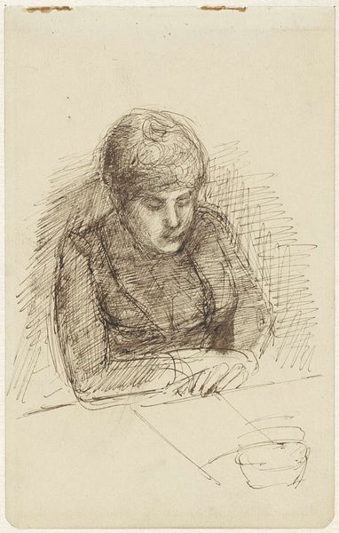 This is Jozef Israëls' drawing of a 'Handwerkende vrouw', housed here at the Rijksmuseum. Drawn with graphite on paper, the portrait immediately draws us into the introspective world of its subject. The drawing captures a woman absorbed in her needlework, the pencil lines delicately rendering the texture of her clothing and the soft contours of her face. Israëls masterfully uses line and shadow to convey not just the physical likeness but also the mood of quiet concentration. The composition is carefully structured to focus attention on the woman's hands and face, the essential elements of her task and inner state. The lack of background detail further isolates her, emphasizing the intimate nature of the scene. The semiotic weight of the drawing resides in the contrast between the precision of the work being done and the subtle, almost melancholic expression of the woman. This contrast invites us to consider the broader themes of labor, domesticity, and the inner lives of ordinary people. The drawing's aesthetic power lies in its ability to transform a simple, everyday scene into a moment of profound reflection.