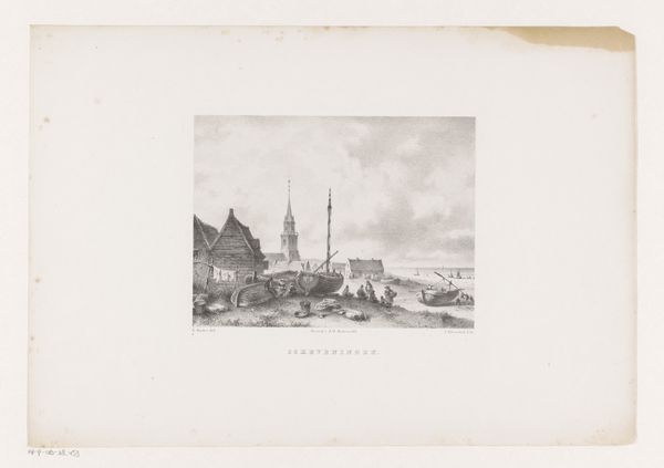 Editor: This engraving, “Zicht op de Mont-Saint-Michel,” by Louis Lebreton, made sometime between 1855 and 1859, presents this famed castle rising from the sea in monochrome. There's a romantic feeling about it. The contrast is beautiful. How would you interpret this work? Curator: This image pulses with centuries of collective memory. What do you see arising from the water? Consider the symbolism of islands. They're often seen as places of refuge, but also isolation. Editor: It seems very much protected. All that stone! A safe haven, yes, but a bit ominous, too. Like it's trying to keep something *out.* Or something *in*. Curator: Precisely. The silhouette of Mont-Saint-Michel against the sky—doesn’t it evoke a certain spiritual striving? Churches and cathedrals often emulate this "reaching to the heavens." Now consider what this says about the people who built it and what the monument represented to them. Is this image primarily about human aspiration or the enduring strength of faith? Editor: Both, maybe? The island is a kind of stage. I hadn’t thought about the “reaching” aspect before. Curator: And what stories do you think that island "stage" has silently witnessed throughout the centuries? It speaks volumes about cultural continuity. What's more important than physical walls is how a single place carries stories and embodies shared experiences across time. Editor: That’s so true. It makes you think about the deeper significance behind iconic landmarks. I see the location with new eyes. Curator: It reminds us that images, like the monuments they depict, can be powerful vessels of cultural memory.