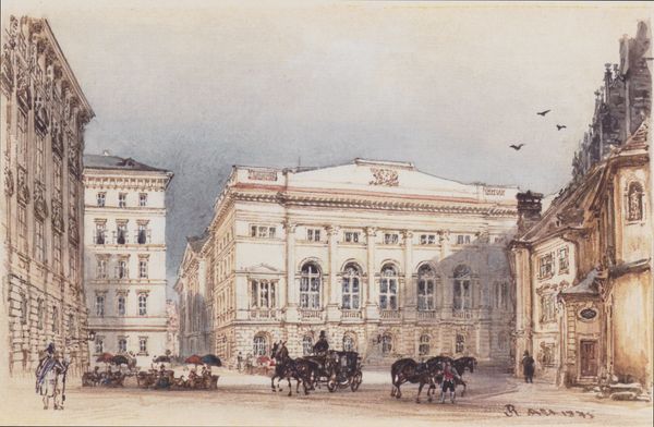 Rudolf von Alt painted Trautson Palace in Vienna with watercolor on paper. The painting presents us with a snapshot of 19th-century Viennese society and the political climate of the Austrian Empire. Rudolf von Alt’s detailed rendering of the Palace captures the opulence of the Austrian aristocracy, reflecting the rigid class structures of the time. The uniformed guards evoke the ever-present military presence of the empire, which was essential for maintaining control over its diverse territories. The identity of those who lived and passed through this space were undoubtedly shaped by their proximity to power, wealth, and social status. Von Alt's painting offers a glimpse into a world where identity was intricately tied to one's social standing. The artwork invites reflection on the complexities of historical power structures and their impact on individual lives.
