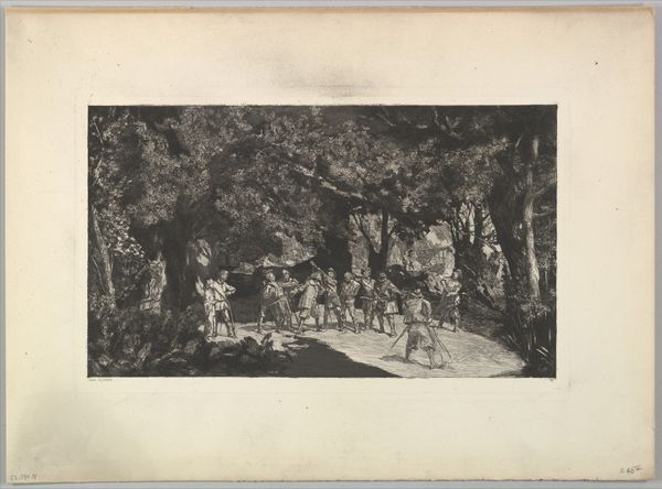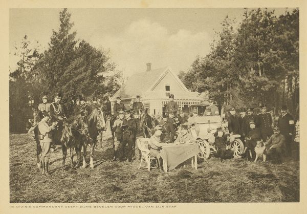 This anonymous photograph, titled 'Militairen tijdens een oefening', captures an exercise, or perhaps something more real. The muted sepia tones give it a sense of something found, something from the past. I love how the image plays with depth. Look at the foreground, how the grassy texture almost vibrates, then your eye is pulled back into the shadows where the soldiers huddle beneath the trees, becoming part of the landscape. The artist's process is to create a scene that obscures as much as it reveals. The photograph reminds me of Gerhard Richter's blurry paintings, where details dissolve into a kind of abstracted memory. In both, there's this idea of a world seen through a haze, a world that's hard to grasp, where meaning is elusive. It's a beautiful and haunting effect.