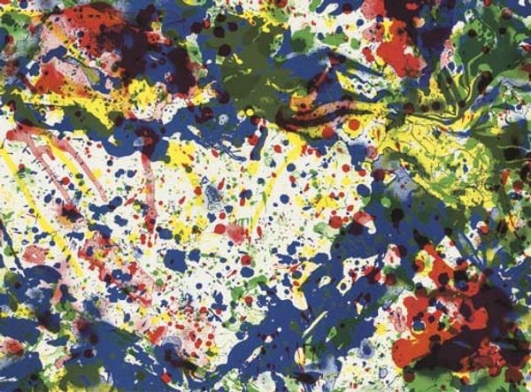 Sam Francis made this untitled print, part of the Pasadena Box series, using lithography. Look at how he lets the paint drip and spatter, as if he's giving the medium permission to express itself freely, like letting a jazz musician improvise. There's a real physicality to the surface, it almost feels like a performance frozen in time. The blobs of red, green, and blue aren't just sitting there; they're exploding, reaching out, and creating little universes of color. Notice that spot of crimson over there with a black circle inside, how does it relate to the others? Francis has this knack for making the accidental feel intentional, which reminds me of Joan Mitchell. Both of them knew how to let go and let the painting do its thing, which is the beautiful contradiction at the heart of artmaking.