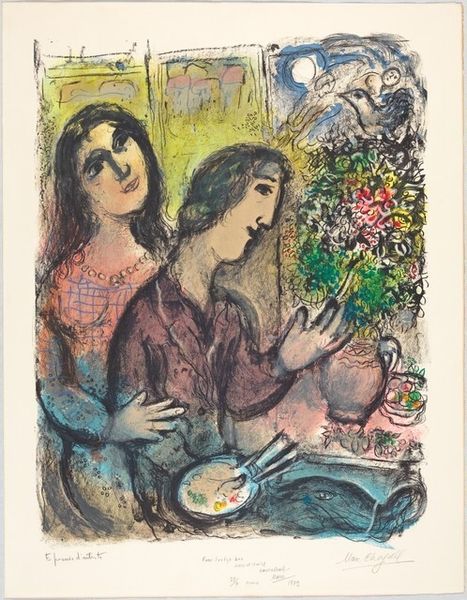 Curator: Walter Gramatté painted "Girl with Cyclamen" in 1921 using oil paint. What do you make of it? Editor: It feels like a melancholic sigh, a study in introversion. The color palette is subdued, almost muted, and there's a vulnerability in the averted gaze of the subject. Curator: Looking closely at the facture of the paint itself, you can see Gramatté used visible brushstrokes and thinned oil paint, leaving some of the canvas texture exposed. I wonder about the economic conditions in Germany in the early 1920s. Did material scarcity influence these artistic choices? Was this simply the kind of inexpensive canvas that was accessible? Editor: Absolutely! Cyclamens have, since Victorian times, symbolized sincere love and resignation. Seeing her hugging herself suggests sorrow or reflection, the flower reiterates that. The heavy outlines around forms—an anxious mark-making to contain emotion perhaps? Curator: The flowers themselves add an interesting layer, contrasting delicate blooms with earthy leaves. It begs the question about the availability and trade of the plant itself, as well as how they were viewed socially and culturally. The artist may be contrasting organic matter to the woman in the picture, while examining human labor. Editor: Interesting point about organic life being compared to human, maybe? Her gaze downward speaks to hidden emotional depths, things internal rather than external. The flower acts like a mirror into her introspective state of mind. Curator: Do you believe that it could simply reflect an artistic process to work rapidly using diluted colors that blend themselves and show underlying construction and drawing, while still emphasizing figuration? Editor: Both are likely. After all, symbols never function in isolation. The fact that they are clearly delineated and consciously placed indicates the creator chose what each implied to his work. We are right, too, in looking into economic possibilities that gave way to this, as both influenced his creative work as an artist. Curator: I am persuaded. On one hand the means by which it was produced, and on the other, a web of symbolism around love, resignation and sorrow. Thanks for offering your iconographic expertise to deepen the discussion about "Girl with Cyclamen". Editor: My pleasure. The process by which symbols were crafted together gives "Girl with Cyclamen" a somber appeal which I will appreciate anew now.