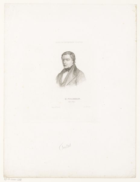 Curator: This is a portrait of Rembertus Westerhoff, created sometime between 1843 and 1863 by Johan Hendrik Hoffmeister. It is rendered primarily in pencil, with elements of graphite, and was subsequently reproduced as a print. What’s your first reaction to it? Editor: Austere, very much in keeping with formal portraiture of that era. The precise rendering of the gentleman’s suit and the slight shadow behind him contribute to the work’s serious and respectable atmosphere. It looks like a woodburytype; tell me about the printing process that enabled production of this portrait. Curator: Indeed. We can see the detailed texture and tonal gradations possible through graphite pencil drawing combined with the woodburytype printing process, an innovation using gelatin relief. The graphite enables meticulous detail that could then be reproduced uniformly through the mechanics of gelatin transfer, giving us some insight to accessibility of images to wider social groups. The layering involved suggests labor beyond initial artistic touch. Editor: I am particularly struck by how the print medium democratized image-making. A photograph, while becoming increasingly available, still wasn’t quite the accessible commodity that these reproductive prints were becoming in the mid-19th century. Do we know anything about the original drawing's circulation? Did it become part of a broader series? Curator: The drawing's journey through production would tell of its inherent value and perceived cultural importance beyond a unique artwork to display. This allowed for wider societal dissemination, with portraiture acting as powerful vehicle for representation of not only physical likeness, but ideological messaging too. The suit he wears, for instance, speaks volumes about contemporary ideas of wealth and prestige. Editor: Absolutely, consider too how portraits like these played a crucial role in solidifying social status, especially for emerging professional classes. It's not merely an image, but a declaration, carefully crafted through the technology available, to reinforce social standing in a shifting social climate of nineteenth-century Netherlands. Curator: So in understanding the portrait of Westerhoff here, both as artwork and as social object, we appreciate not just a likeness, but the machinery by which it became multiplied, disseminated and therefore instrumentalized in an increasingly visual world. Editor: Agreed, understanding its making, as well as reception, underscores the layered complexity of an image produced during a critical period of social change and industrial expansion. Thank you for highlighting this important context!