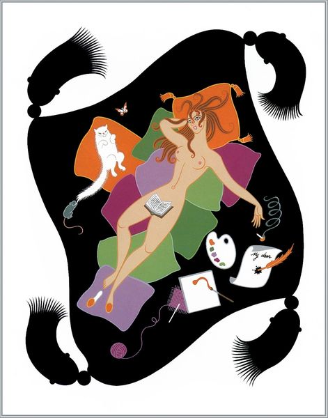Erte crafted this serigraph, Aquarius, which delivers a visually striking constellation of color, shape, and form. The composition is structured around a central nude figure rendered in lavender, contrasted against a stark black background speckled with undulating rows of stars. This juxtaposition creates a mesmerizing effect, as if the figure is both emerging from and dissolving into the cosmos. The artist employs a semiotic system of coded cultural references. The figure pours bubbles onto skyscrapers that tower like modernist obelisks. This blends classical mythology with art deco sensibilities. Erte destabilizes conventional notions of representation through the use of fluid lines and geometric patterns. It merges the organic with the architectural. Note the meticulous arrangement of stars. Their varying sizes and densities construct an ethereal celestial form, simultaneously abstract and representational. This reflects a broader philosophical interest in perception. Erte's work encourages us to question fixed meanings, and to see the world as a fluid, dynamic interplay of signs and symbols.