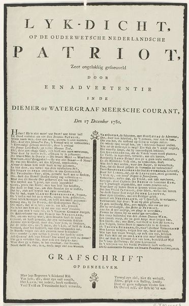 Editor: Here we have a 1790 engraving by Johannes le Francq van Berkhey, titled "Explanation of the Allegorical Print Regarding the Marriages of the Son and Daughter of Willem V." It's densely packed with text. What stories do you think this engraving is trying to tell, and to whom? Curator: This engraving provides us with a fascinating glimpse into the political and social theater of the late 18th century. It is deeply rooted in the power structures of the time. Royal marriages weren't just about love; they were strategic alliances. Look closely at the framing of the Orange family here - how does the text and imagery work to construct an idea of "Orange" identity and its relationship to freedom and liberty? Consider the intended audience – who was the artist trying to reach with this message, and what kind of cultural capital was required to fully understand it? Editor: So, it’s less about celebrating love and more about projecting an image of power and stability? Curator: Exactly. Think about the social and political climate in the Netherlands at this time. There were growing tensions between the Orangists and the Patriots. How might this print function as a form of propaganda, bolstering support for the House of Orange amidst this unrest? The inscription ‘Oranje aan de Vryheid’ suggests this. Can we trust that message at face value, or must we contextualize the family's claims around "freedom"? Editor: I see! So it’s not just a document of a wedding, but an intervention in a larger political debate? Curator: Precisely. It uses the spectacle of these marriages to reinforce the legitimacy and desirability of Orangist rule. What’s powerful about this print is its ability to reveal the entanglement of personal events and larger political narratives, all through the lens of power, gender, and social order. Editor: I hadn’t considered the propaganda element. That adds a whole new layer of interpretation for me. Curator: Indeed! Examining these artifacts as constructions of power allows us a more nuanced and insightful historical reading.