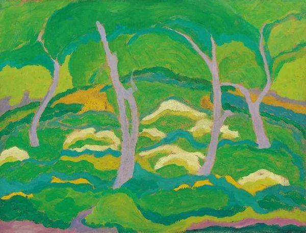 Henri Matisse made this landscape in Collioure, probably with oil on canvas, using an approach that’s all about laying down marks and letting the painting build itself up. The color palette is vibrant, but not in a way that feels too planned out, more like an improvisation. Up close, you can see how the paint is applied in these quick, almost choppy strokes. It's not about blending or creating smooth surfaces; instead, it's like Matisse is letting each brushstroke have its say. Take a look at the way he renders the trees. They’re not just green; there's blue and yellow mixed in, giving them this lively, shimmering quality. The ground looks like a patchwork of greens, blues, and even some pinks, creating a sense of depth without traditional perspective. Matisse reminds me a bit of Bonnard, both of whom were interested in capturing a feeling of light and atmosphere, but each has their own way of doing it. Ultimately, this piece is a reminder that painting is a process.