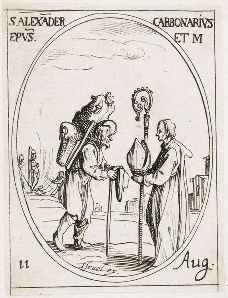 Curator: Honoré Daumier gifts us this biting commentary, "Turgot: 'Well, there, my poor Condé! It seems that they've taken my name, just like they've taken yours, for a shop sign!'" Editor: There's such a potent sense of deflation here, isn't there? The once-grand Condé seems almost a caricature already. Curator: Daumier was a master of lithography; the way he coaxes so much texture and emotion from simple lines is astonishing. The print medium itself made his work accessible to a wide audience, fueling public discourse. Editor: Crucially, the materiality of printmaking meant Daumier could quickly respond to the political climate, using satire to critique power structures. A vital form of resistance. Curator: Absolutely. It’s a poignant reminder that even in the face of oppression, art can offer a space for reflection and, dare I say, a spark of hope. Editor: Indeed. It invites us to consider the labor and means through which art is delivered to the masses, a crucial step to understanding social justice.